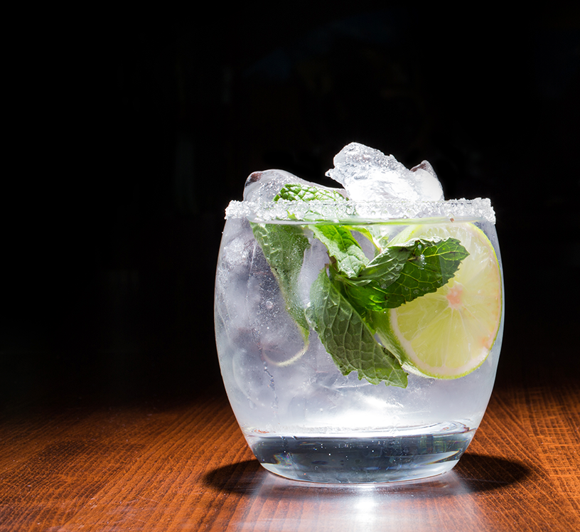 En un vaso con hielo, mezcla el mezcal, el jarabe de agave y el jugo de lima. Completa con agua con gas y decora con una rodaja de jengibre y otra de lima.