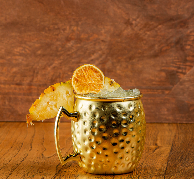 En una coctelera con hielo, agita el mezcal, el licor de granadina, el jugo de piña y el jarabe de agave. Sirve en un vaso con hielo y decora con frutas rojas.
