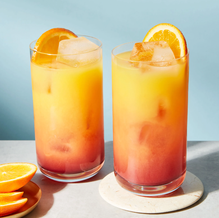 En un vaso con hielo, vierte el mezcal y el jugo de naranja. Deja que se asiente y luego agrega la granadina lentamente para crear un efecto de "amanecer". Decora con una rodaja de naranja y una cereza.
